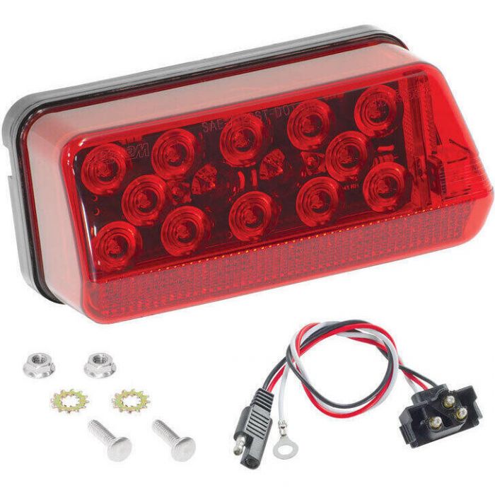 The Wesbar LED wrap-around tail light offers a durable and waterproof design for vehicles over 80". It combines stop, turn, and tail functions in a single unit with easy plug-in installation.